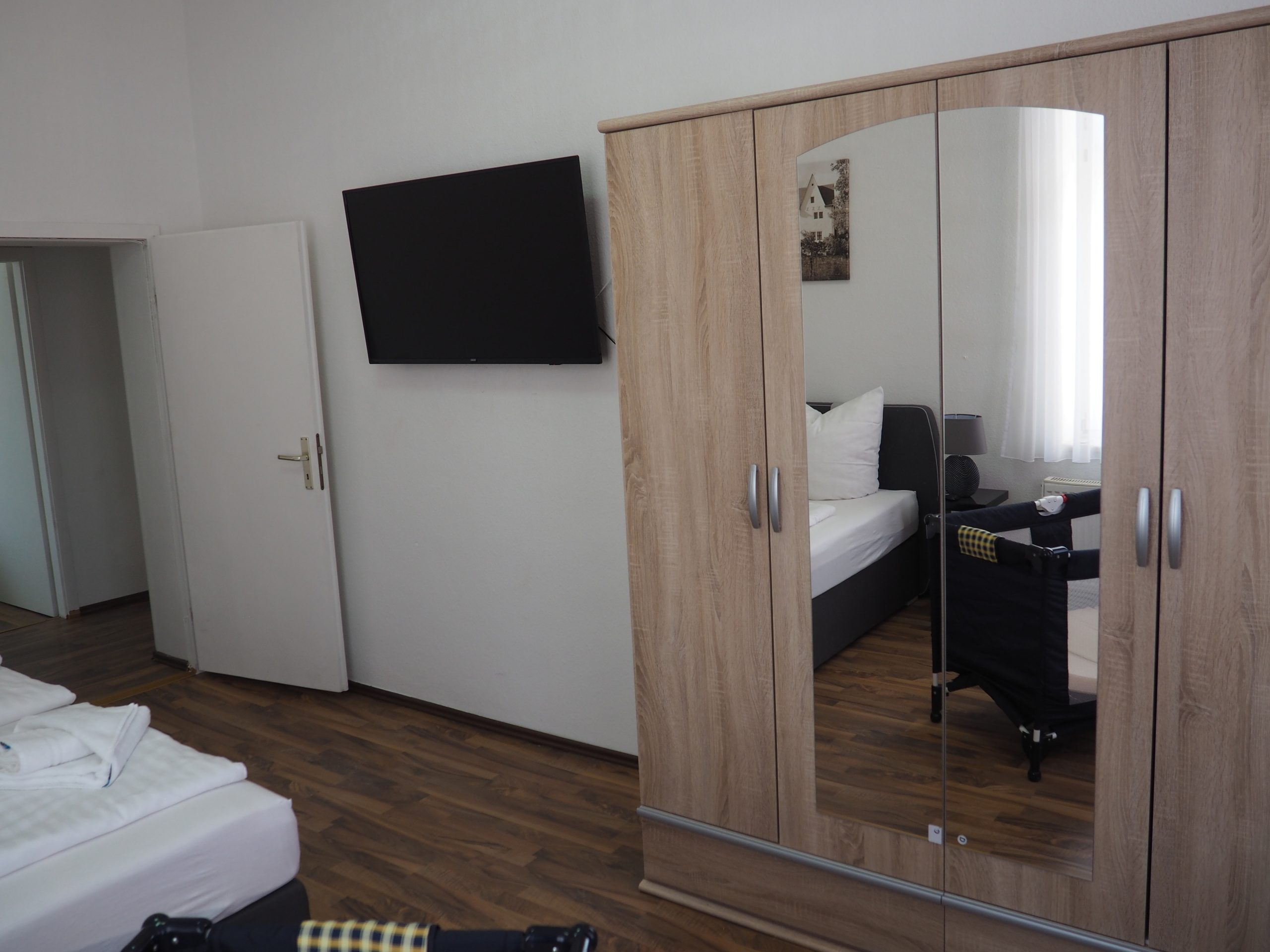 In dieser Wohnung im ersten Obergeschoss stehen Ihnen drei Schlafzimmer zur Verfügung. Zwei Schlafzimmer verfügen jeweils über ein 1,80 m breites Boxspringbett, im dritten Schlafzimmer sind zwei Einzelbetten vorhanden. Alle Schlafzimmer verfügen über einen Fernseher. Im Wohnzimmer steht Ihnen eine gemütliche Couchgarnitur zur Verfügung, ein großer Fernseher sowie ein Esstisch für sechs Personen. Die Küche ist komplett eingerichtet. In dieser Wohnung können sechs Personen komfortabel wohnen.