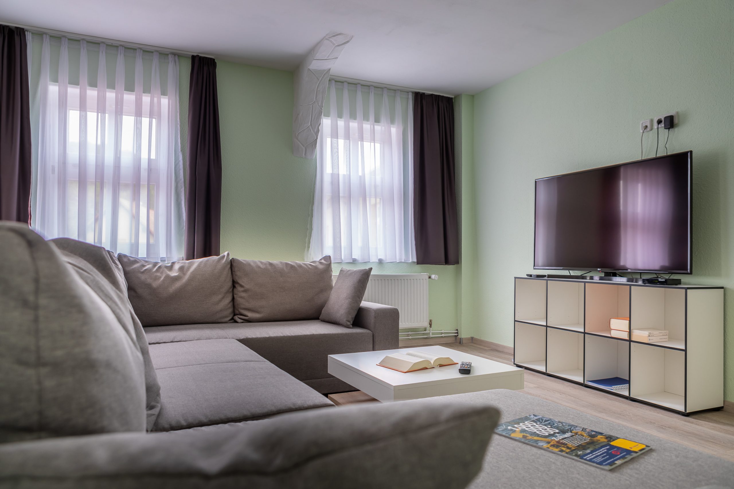 Sie wohnen in einer großzügigen Dreizimmerwohnung im Erdgeschoss. Die Wohnung verfügt über zwei großzügige Schlafzimmer (1,80 m breites Boxspringbett), ein Wohnzimmer mit Aufwertungsmöglichkeit, ein Badezimmer sowie eine geräumige Küche. Fernsehen können Sie…